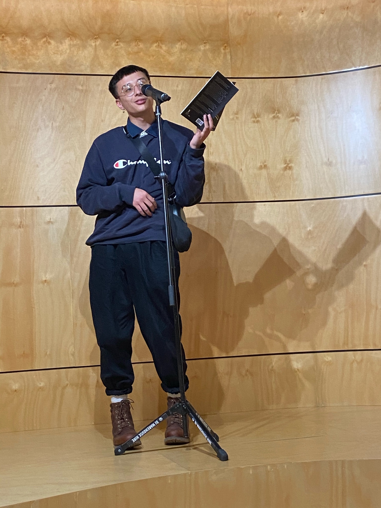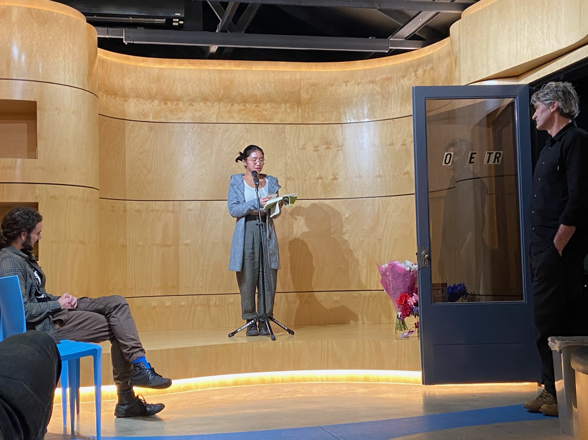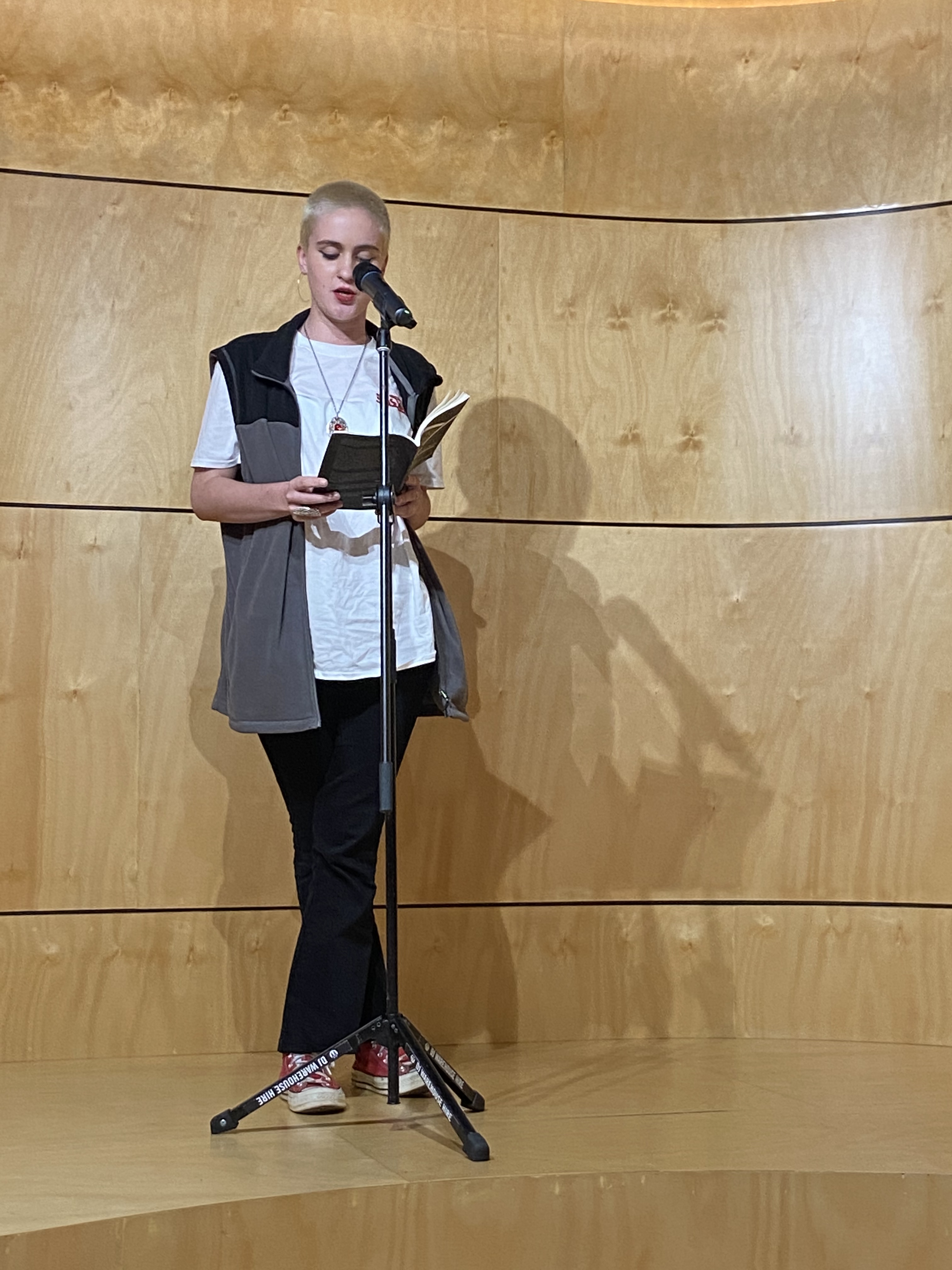 Next up was Ela…the very, very first student to join the Story Factory year of poetry program when we started in 2018. Our first workshops were at the Parramatta PCYC, while people were boxing and lifting weights in the room next door. At the launch Ela read two sections from the sequence called When the towers fall. This sequence is inspired by the tower blocks in Redfern, and digs into what will happen as residents are moved out of these places they’ve lived for so long. You can find Ela’s latest collection – Raw Soul – here.